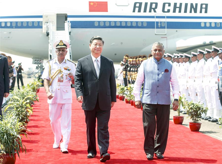 Chinese President Xi Jinping arrives in the western Indian state of Goa, Oct. 15, 2016, for the eighth summit of the emerging-market bloc of BRICS, which groups Brazil, Russia, India, China and South Africa, at the invitation of Indian Prime Minister Narendra Modi. (Xinhua/Xie Huanchi)