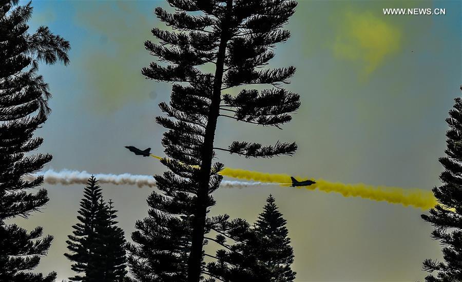 J-10 fighter jets of China's Bayi Aerobatic Team perform at the 11th China International Aviation and Aerospace Exhibition in Zhuhai, south China's Guangdong Province, Nov. 2, 2016. The exhibition opened here on Tuesday. (Xinhua/Liu Dawei)