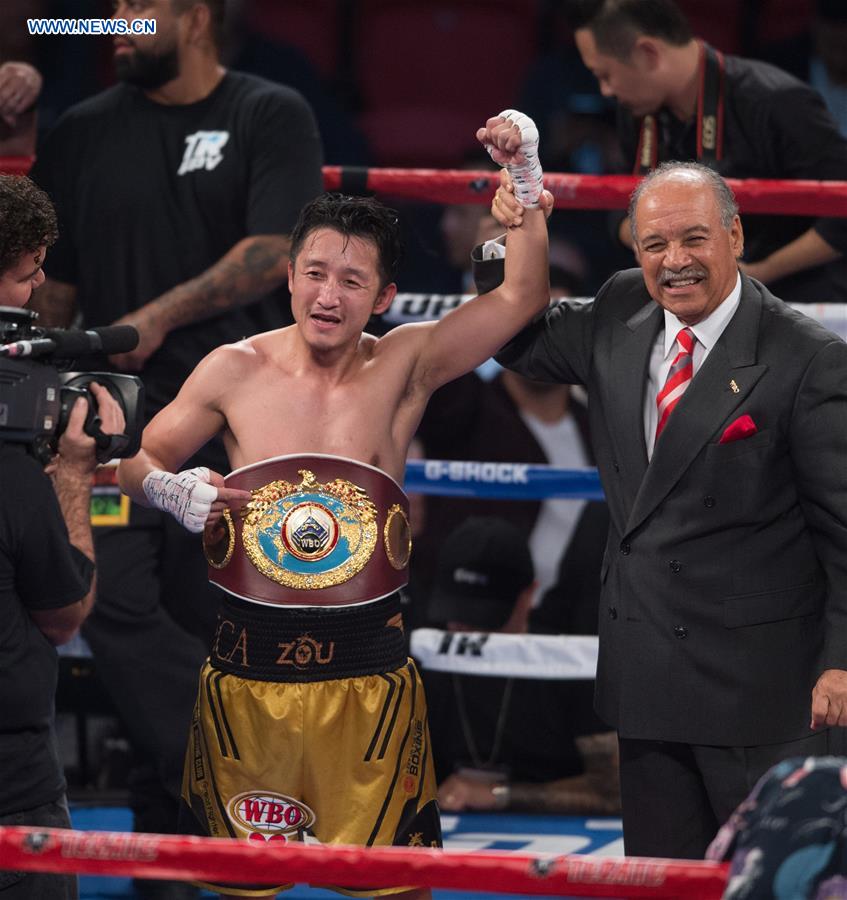 LAS VEGAS, Nov.6 -- Two-time Olympic gold medalist Zou Shiming from China won a unanimous decision against Thai boxer Prasitsak Phaprom to be crowned the WBO flyweight world champion here on Saturday night.