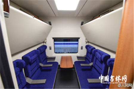 The train's seats are capable of converting from sleepers into regular chairs, which allows it to operate during the daytime and at night. In order to make travelers as comfortable as possible, the train utilizes sound and shock absorption, as well as sound insulation to minimize the sounds of standard operation. Even when the train runs at full speed, the noise inside is limited to 65 decibels, which is 20 decibels lower than in a flying airplane.