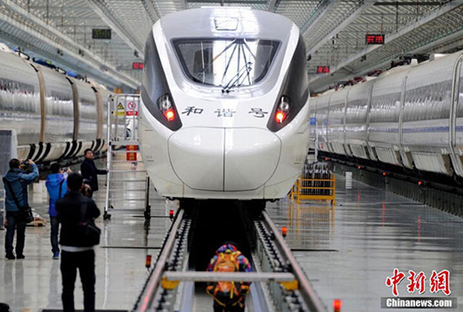CRH5E, China's first high-speed train with sleeper cars, was unveiled in Changchun, Jilin province on Nov. 11. The train can travel at speeds of up to 250 kilometers per hour. It has been nicknamed the "panda high-speed train" due to the way its headlights resemble a giant panda’s dark eye circles.