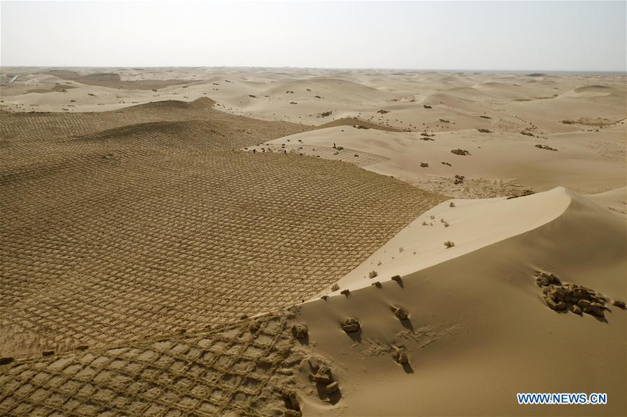 Ecological barrier under construction to prevent desertification in NW China (2)