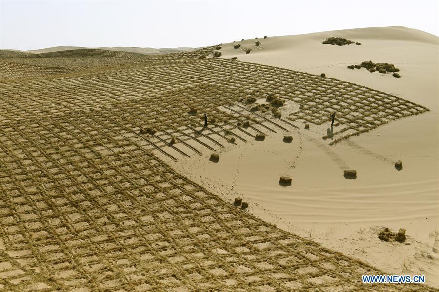 Ecological barrier under construction to prevent desertification in NW China (9)