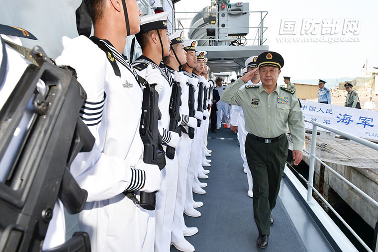 Fan Changlong, Vice Chairman of the Central Military Commission, salutes soldiers on a Chinese command ship, currently in Djibouti for resupply. [Photo: mod.gov.cn]