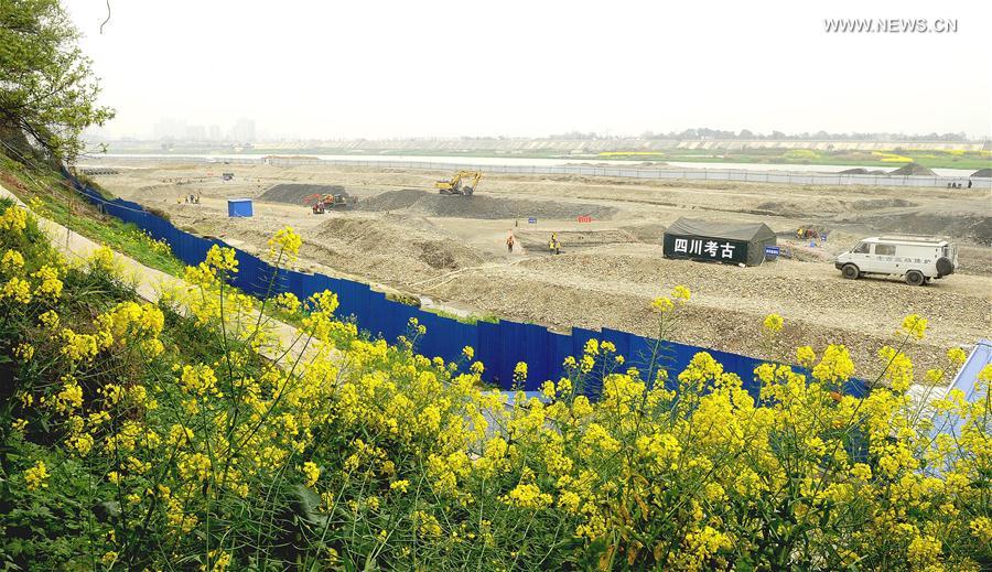 Photo taken on March 17, 2017 shows the site of an archaeological excavation at Pengshan District in Meishan City, southwest China's Sichuan Province. More than 10,000 gold and silver items that sank to the bottom of a river in Sichuan Province over 300 years ago have been recovered, archeologists said Monday. The items included a large amount of gold, silver and bronze coins and jewelry as well as iron weapons such as swords, knifes and spears. (Xinhua/Chen Xie)