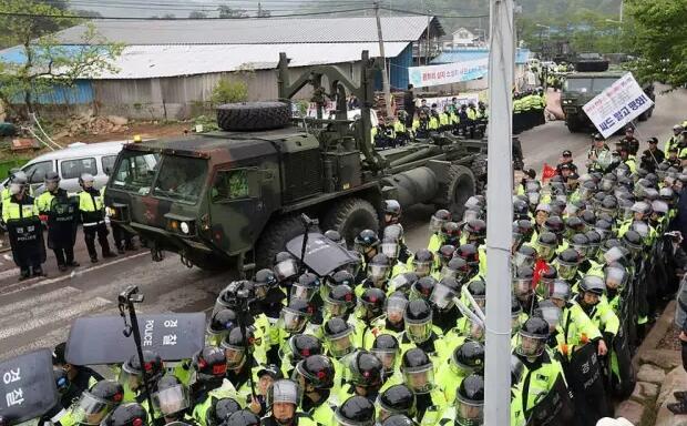 South Koreans protest deployment of the Terminal High Altitude Area Defense (THAAD)