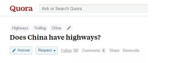 Does China have highways? This silly question was raised by an unidentified netizen in the U.S. on the question-and-answer site Quora, and it got a lot of replies from netizens who clearly know a lot more about China.