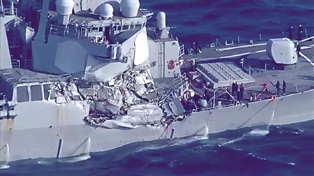 The 154 meter-long U.S. guided-missile destroyer, which suffered considerable damage to its right side in the collision, is part of the U.S. 7th Fleet and returned to the Yokosuka Naval Base in Kanagawa Prefecture, about 50 kilometers southwest of Tokyo.