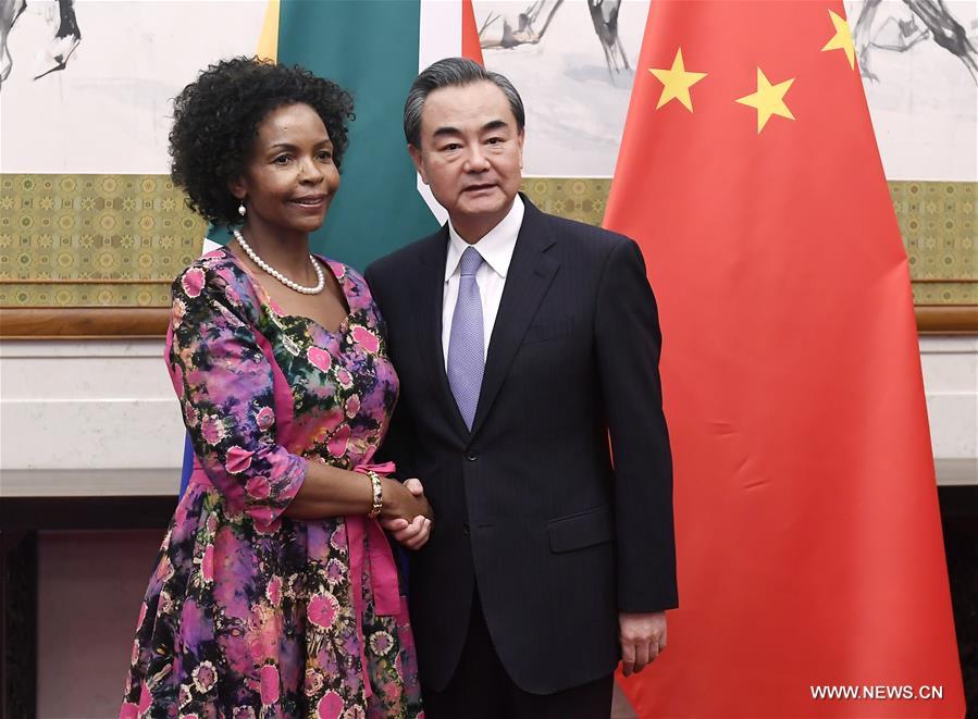 Chinese Foreign Minister Wang Yi (R) meets with South African Foreign Minister Maite Nkoana-Mashabane in Beijing, capital of China, June 18, 2017. (Xinhua/Yan Yan)
