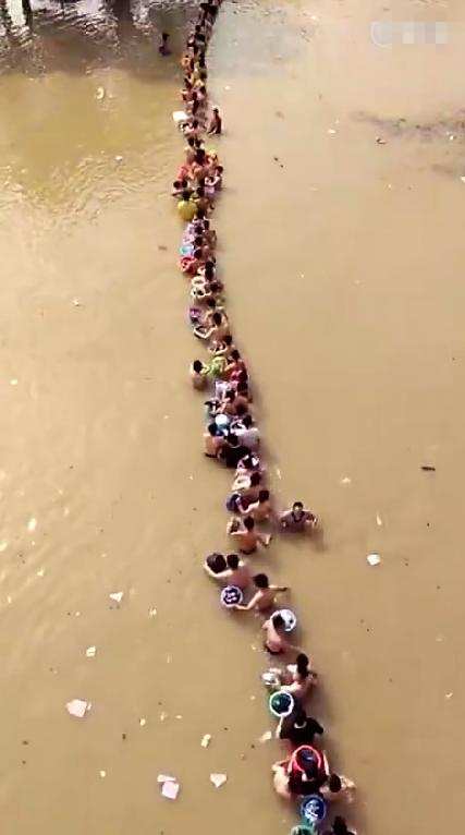 Students from Xiangxiang No. 1 Middle School waded in floodwater toward safe zones on Sunday, July 2. Floodwaters entered the school’s dormitory building at 10 a.m. on Saturday and rose waist high by 6 a.m. the next day. The school told students to evacuate the building and requested assistance from the local government, which dispatched boats to assist in the evacuation. As of Sunday, 11:30 a.m., 1,300 students had reached safe zones. (Photo/Xiaoxiang Morning Post)