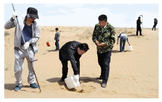 Wang’s determination is attracting wide public attention with more people joining the battle against desertification. On June 28, over 60 volunteers from the provincial capital, Lanzhou, came to assist Wang press sand and plant more trees.