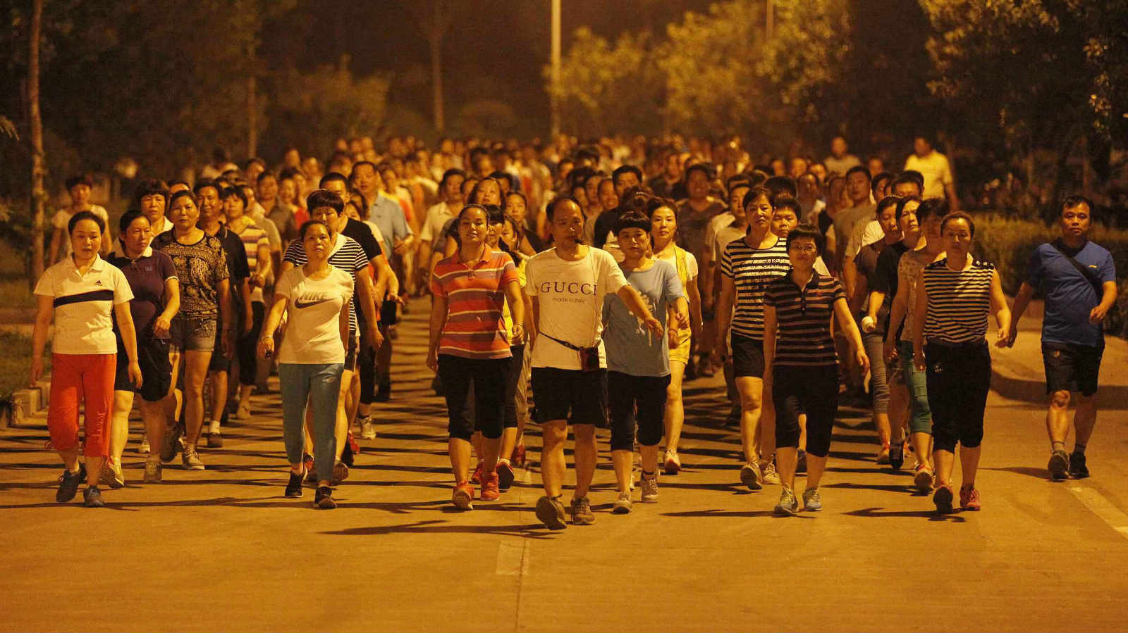 Fast-walking has become a popular group exercise for the elderly across China in recent years. It usually involves dozens of people walking and chanting slogans, accompanied by loud music.