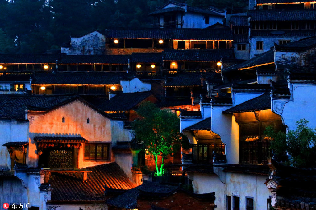 The night view of Wuyuan in Jiangxi province, well-known as China's most beautiful countryside, is shown in a photo taken on July 27, 2017. [Photo: IC]