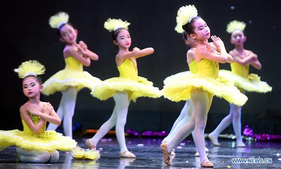 Children competitors dance during the Guangxi zone of a national children's ballet contest in Nanning, capital of the southwest China's Guagnxi Zhuang Autonomous Region, July 30, 2017. The contest kicked off here on Sunday, attracting around 1,000 young dancers of 50 groups in the region. (Xinhua/Zhang Ailin)