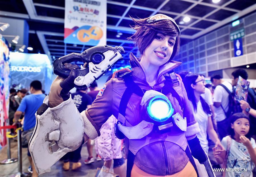 A cosplayer dressed as animation character takes part in the Hong Kong Animation, Comics and Games Expo, south China's Hong Kong, July 30, 2017. The 19th Hong Kong Animation, Comics and Games Expo (ACGHK) has been held at Hong Kong Convention and Exhibition Centre in Hong Kong from July 28 to August 1. About 105 exhibitors attended this event. (Xinhua/Wang Xi)
