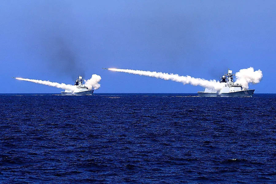 Dozens of missiles were fired in the drills, according to the People's Liberation Army (PLA) Navy.