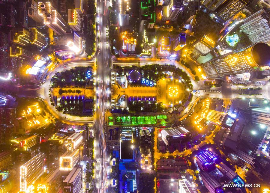 Photo taken on Aug. 19, 2017 shows the night scene of Jinhu square in Nanning, capital of south China's Guangxi Zhuang Autonomous Region. The 14th China-ASEAN Expo will be held between Sept. 12 and 15 in Nanning. (Xinhua/Huang Xiaobang)