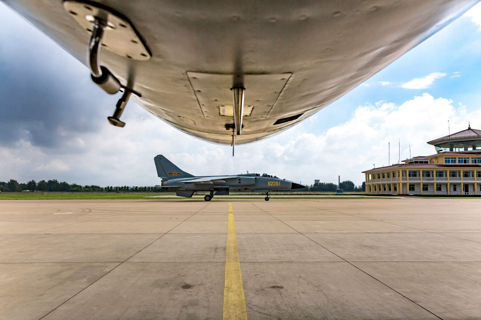 A JH-7 fighter bomber attached to an aviation brigade of the air force under the PLA Northern Theater Command taxies towards the runway after exiting its aircraft hanger at a military airfield in east China's Shandong Province on August 15, 2017. (eng.chinamil.com.cn/Photo by Sun Zhendong)