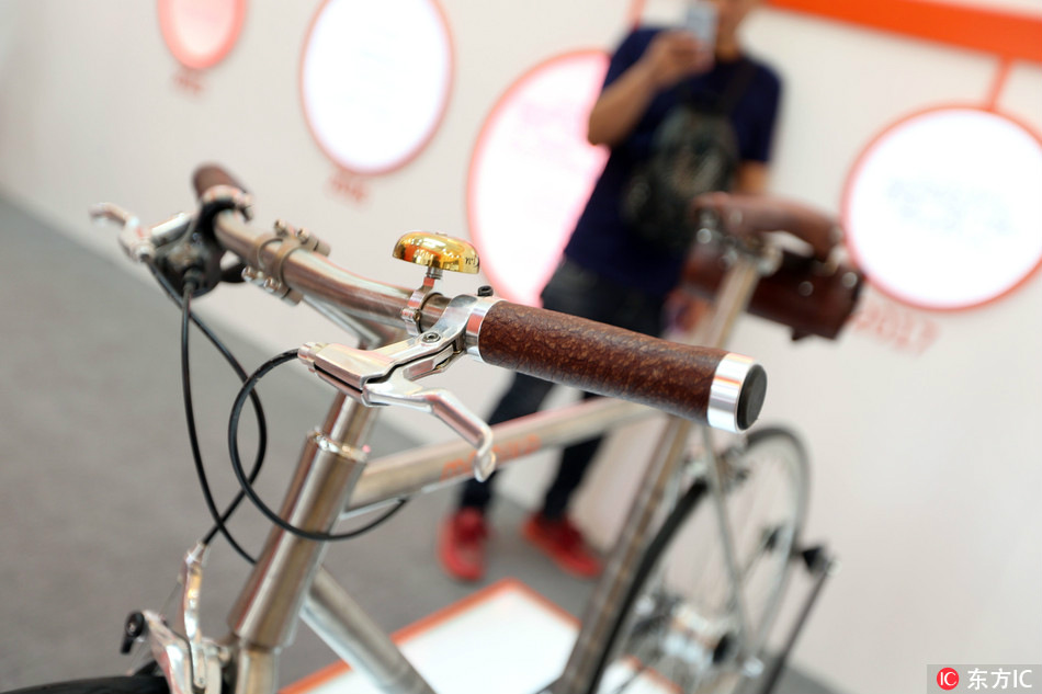 A titanium alloy road bicycle, from Chinese bike-sharing service Mobike, is on display at the 2017 Shanghai Popular Science Products Expo on Friday, August 25, 2017. The Expo features nearly 3,500 exhibits and will come to a close on Monday. [Photo: IC]