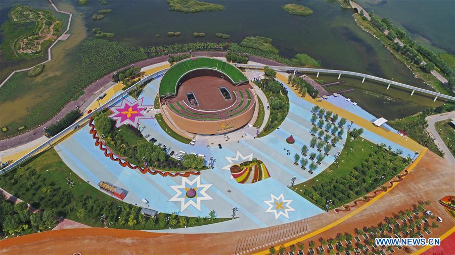 Photo taken on Aug. 30, 2017 shows a view of a part of the site of the 9th China Flower Expo in Yinchuan, capital of northwest China's Ningxia Hui Autonomous Region. The event is to kick off on Sept. 1, 2017. (Xinhua/Wang Peng)