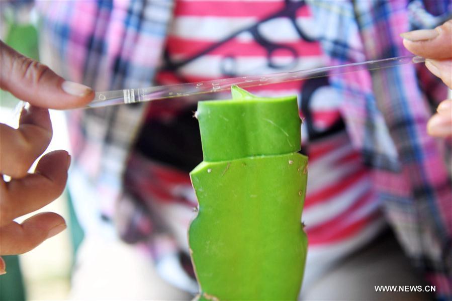 A farmer transplants dragon fruit plant in Napo Town of Tianyang County, Baise City of south China's Guangxi Zhuang Autonomous Region, Aug. 31, 2017. A group of 23 families are expecting their increased income as they tied a new partnership with a fruit enterprise 3 years ago as share holders. (Xinhua/Zhang Ailin)