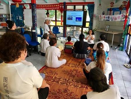 Participants of a Qigong exercise with instructor Xiaoning Lu (second from left) at the University of the South Pacific’s (USP) Cook Islands Campus on Oct 4, 2017. [Photo: USP]