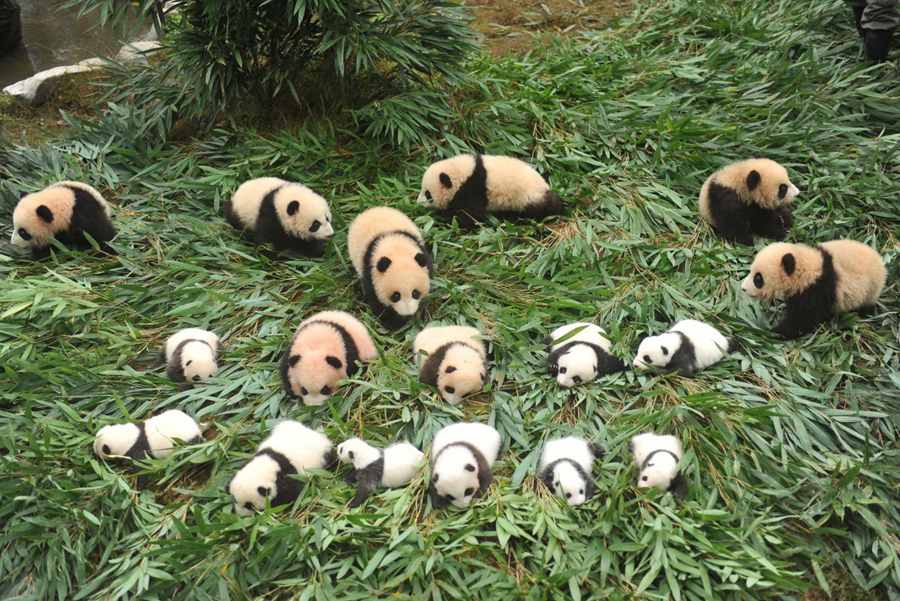 19 panda cubs born in 2017 make their debut at Shenshuping breeding base of the China Conservation and Research Center for the Giant Panda (CCRCGP) in Wolong National Nature Reserve, southwest China's Sichuan Province. (Photo by CCRCGP)