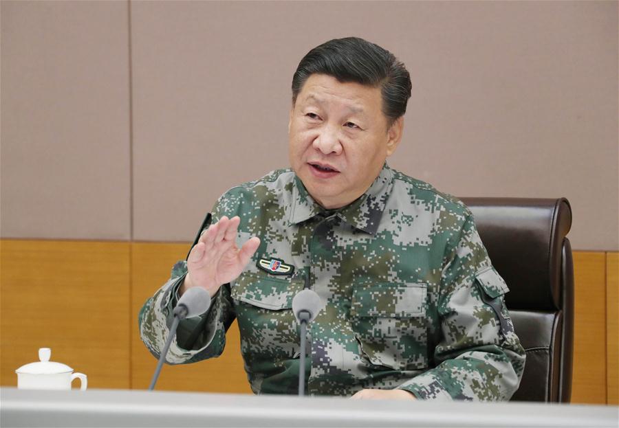 Chinese President Xi Jinping, who is also general secretary of the Communist Party of China Central Committee and chairman of the Central Military Commission (CMC) and commander in chief of the CMC joint battle command center, speaks during his inspection tour to the command center on Nov. 3, 2017. Xi Jinping on Friday instructed the armed forces to improve their combat capability and readiness for war. (Xinhua/Li Gang)