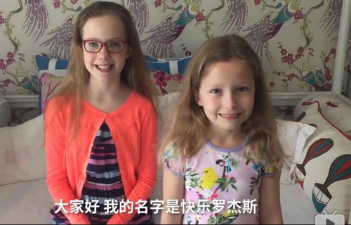 This screenshot shows the daughters of Jim Rogers speaking Mandarin Chinese