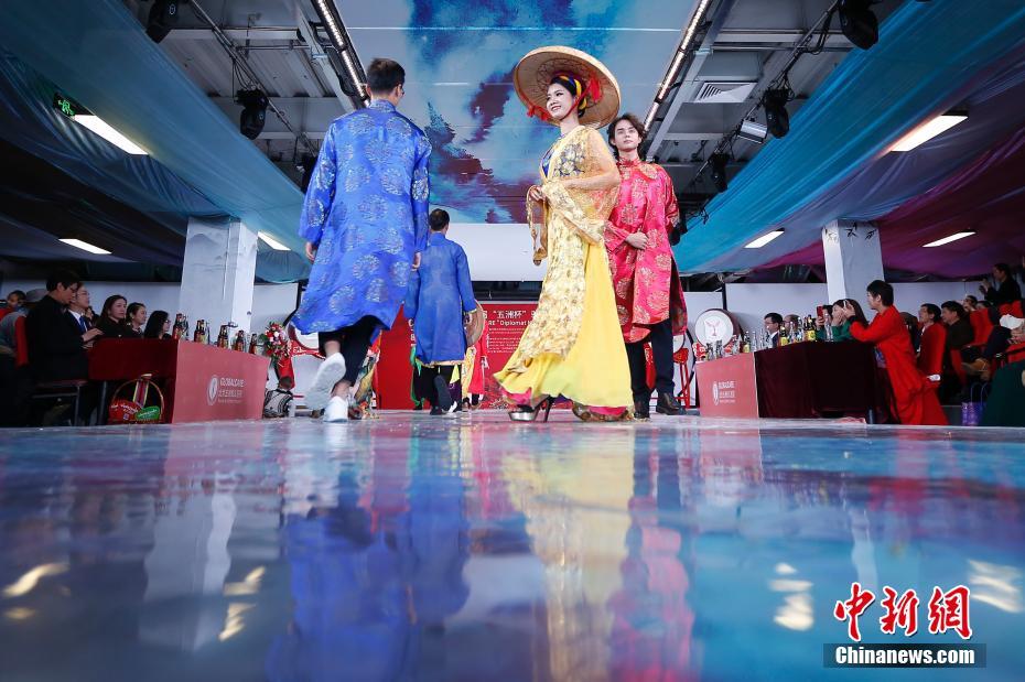 The 7th Wuzhou Cup Diplomat National Costume Competition was held in Beijing on Nov. 26. Diplomats and their families from 15 foreign embassies in China participated in the event wearing their respective traditional costumes, presenting a feast of cultures.