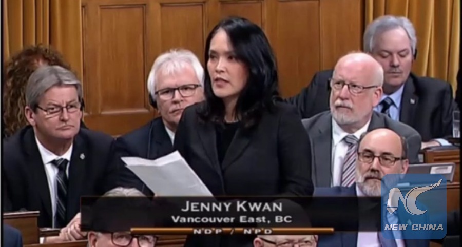 A video clip from the Canadian Parliament shows lawmaker Jenny Kwan speaks at the House of Commons of Canada in Ottawa, Canada, on Nov. 30, 2017. She made an open statement in parliament on the Nanjing Massacre and other Japanese atrocities committed during World War II.