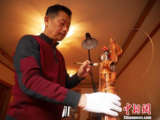 By teaching himself and constantly improving his craft for years, 65-year-old Wang Huaimin in northeastern China’s Jilin City has carved many Chinese opera figures on leather.