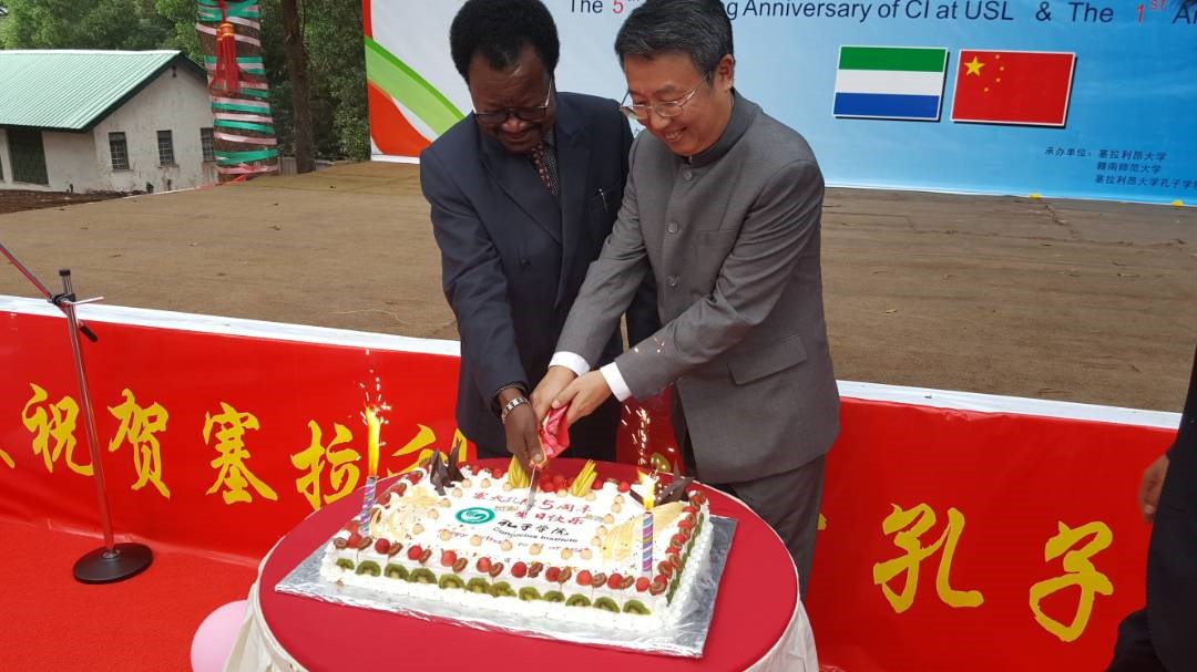 The Chinese Ambassador to Sierra Leone, Wu Peng was joined by the country’s Vice President, Victor Bockarie Foh and other distinguished Guests, including the Administration, Staff and Students of the Confucius Institute at the University of Sierra Leone in celebrating the Institute’s 5th anniversary in Sierra Leone and also the 1st anniversary since ‘Friends of Confucius Institute’ was founded.