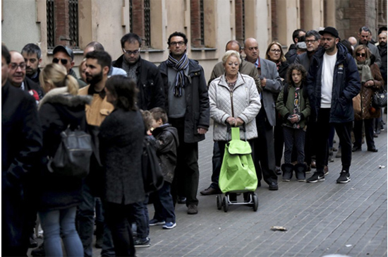 Voters stand in line outside the Polytechnic University of Catalonia on December 21, 2017. Photo: Claudio Alvarez