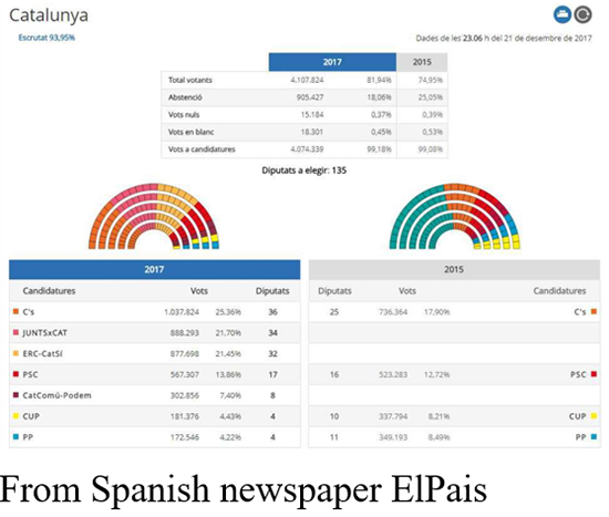 Spain’s central government called for the election once it regained control after sacking former Catalonian president Carles Puigdemont, after October’s unilateral declaration of independence.