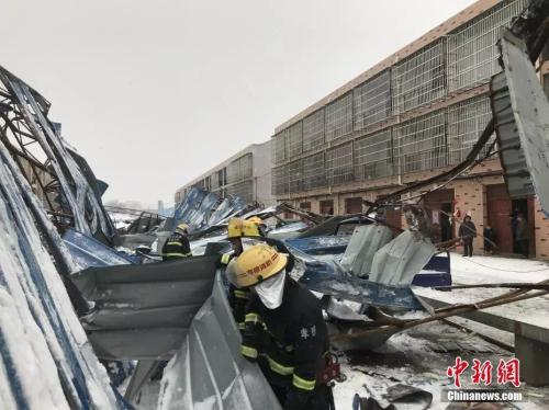 Policemen made every effort to help rescue people from a vegetable market which collapsed due to heavy snow in Anlu, Hubei Province.