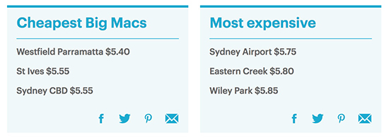 A Big Mac is 45 cents cheaper at Westfield Parramatta in Sydney compared to the most expensive store at Wiley Park in the city's south-west for $5.85.