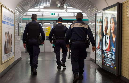 RATP security officers walk through a Paris subway station. Photo: Romuald Meigneux