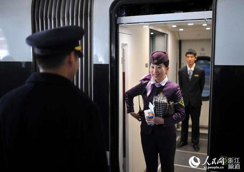 Jin Xin, a railway dispatcher at a train station in eastern China’s city of Hangzhou, stayed with his wife Wang Huan, a high-speed train conductor, for only two minutes after she stopped at the station.