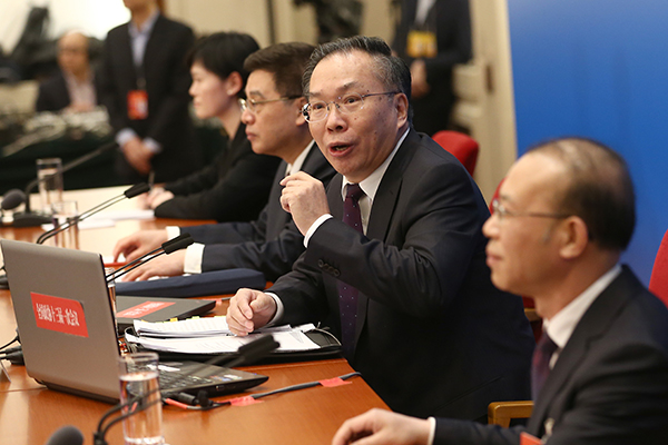 Wang Guoqing, spokesman for China's top political advisory body, addresses a news conference ahead of the CPPCC annual session in Beijing on Friday. [Photo/China Daily by Zou Hong]