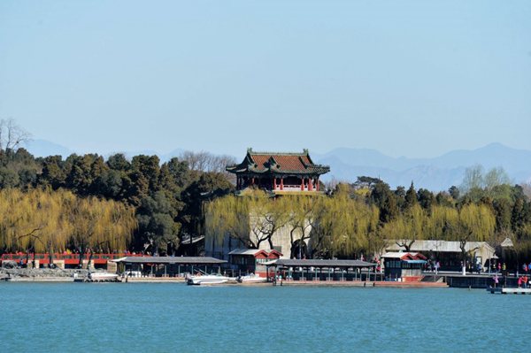 The Summer Palace under blue skies in early spring of 2017. Data shows that a total of 226 days reported good air quality in Beijing in 2017, 28 days more than in 2016, while the number of severely polluted days reduced to 23 from 39 days in 2016. (Photo from People’s Daily Online)