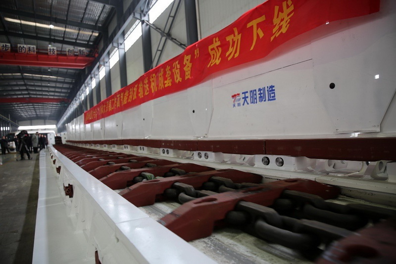 The world’s first 8.8-meter smart scraper conveyor for a working face with large mining height is completed, Jan. 28, 2018. Since the major equipment was developed independently by China in 2011, it has replaced the imported equipment from Europe and the US. It has been granted 37 patents and won many prizes of mining industry. (Photo from CFP)