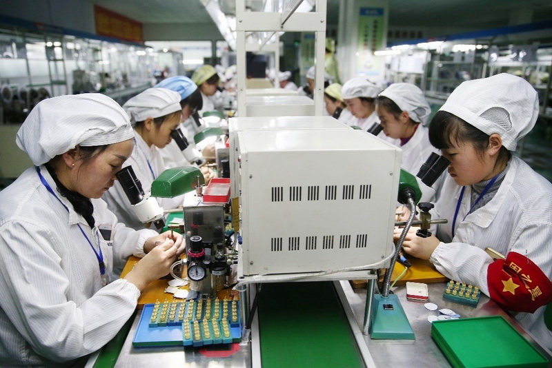 Workers assemble micro and special motors used in phones at a manufacturer in Huaibei, Anhui province, Dec. 8, 2017. Up to now, the annual production capacity in this city has reached 250 million, accounting for one fifth of the global market, and the self-developed micro motors have been used in phones of Microsoft, Samsung, Apple, Huawei, Xiaomi and other famous brands. The micro motors, which have been granted with over 100 patents, are often in short supply. (Photo from CFP)