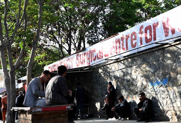 Local people wait to see their family members outside a hospital in Kabul, Afghanistan, on April 22, 2018. [Photo/Xinhua]