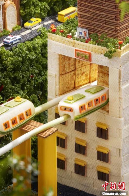 The iconic Chongqing Grand Theater made of food materials. (Photo: Chinanews.com)