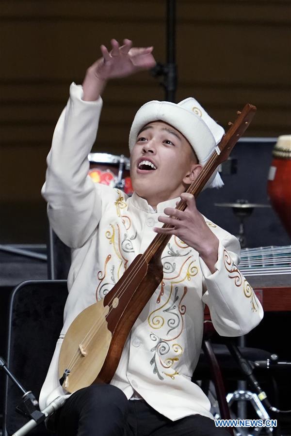 A Kyrgyz musician performs at the Shanghai Cooperation Organization (SCO) Art Festival in Beijing, capital of China, May 30, 2018. The festival opened here on Wednesday and will last until Friday. (Xinhua/Shen Bohan)