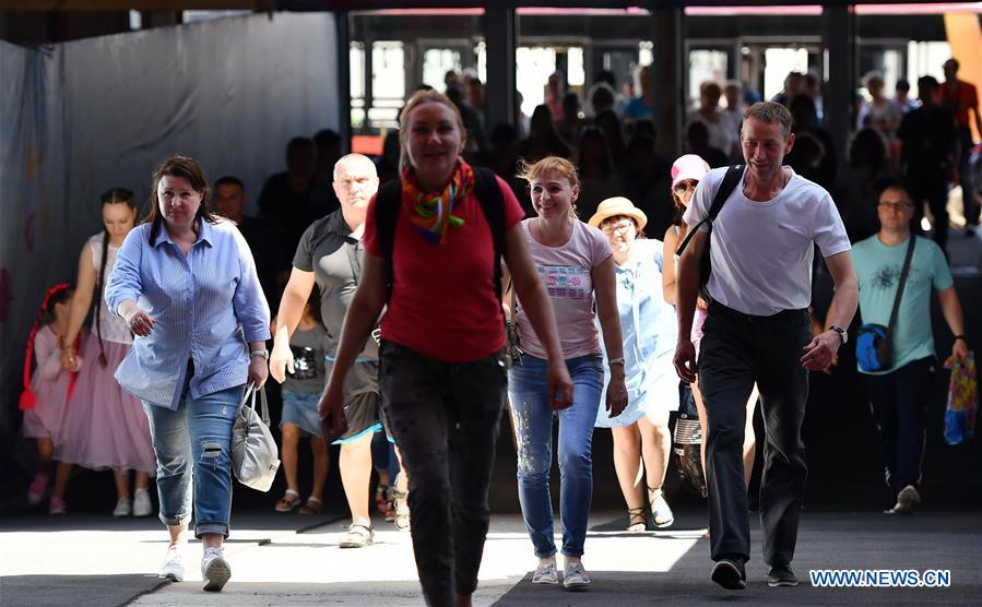 Tourists from Russia arrive at an airport in Sanya, south China's Hainan Province, June 1, 2018. Hainan aims to be an international tourism consumption center. (Xinhua/Guo Cheng)