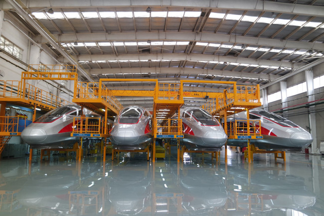 China owns full intellectual property rights over the trains by using homegrown technologies. The high-speed trains are also called as the high-speed electric multiple unit, or EMU, trains.