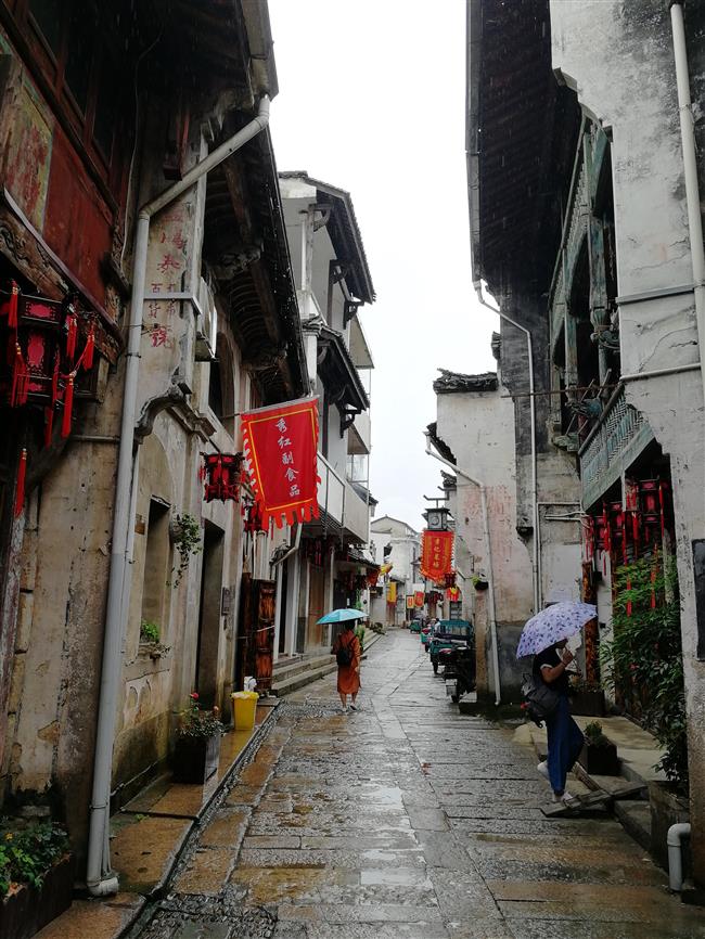 Over 100 Hui-style wooden structure buildings, from the Qing Dynasty (1644-1911), still stand there. Words on the buildings’ walls illustrate their functions in the past: Zhenfeng was a cigarette shop, Huiyuan Hall sold traditional Chinese medicine, while Xu Yilong was a grocery store.