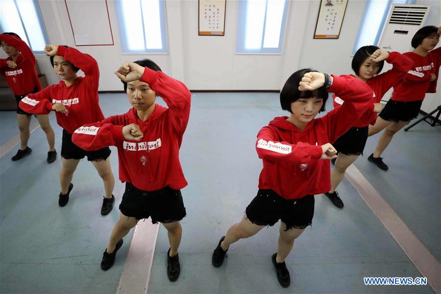 Chinese peacekeeper Yu Peijie (3rd L) dances with fellow soldiers in a gym at the camp of Chinese peacekeeping infantry batallion to South Sudan on April 30, 2018. Yu Peijie, 26-year-old, is the monitor of the female peacekeeper team of Chinese peacekeeping infantry batallion to South Sudan. She has a nickname called "Strong Elder Brother." However, she also has a soft heart. This year marks the 70th anniversary of UN peacekeeping. China began its participations in the UN peacekeeping operations in 1990. Today, China has some 2,500 peacekeepers and plays an important role in promoting and maintaining world peace. (Xinhua/Wang Teng)